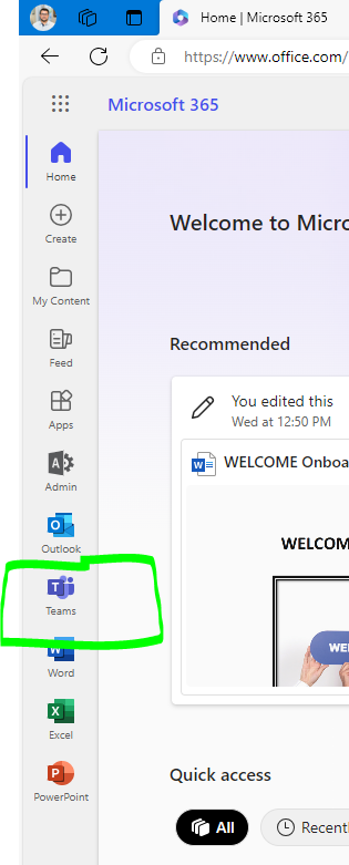 On the left panel, click on Teams